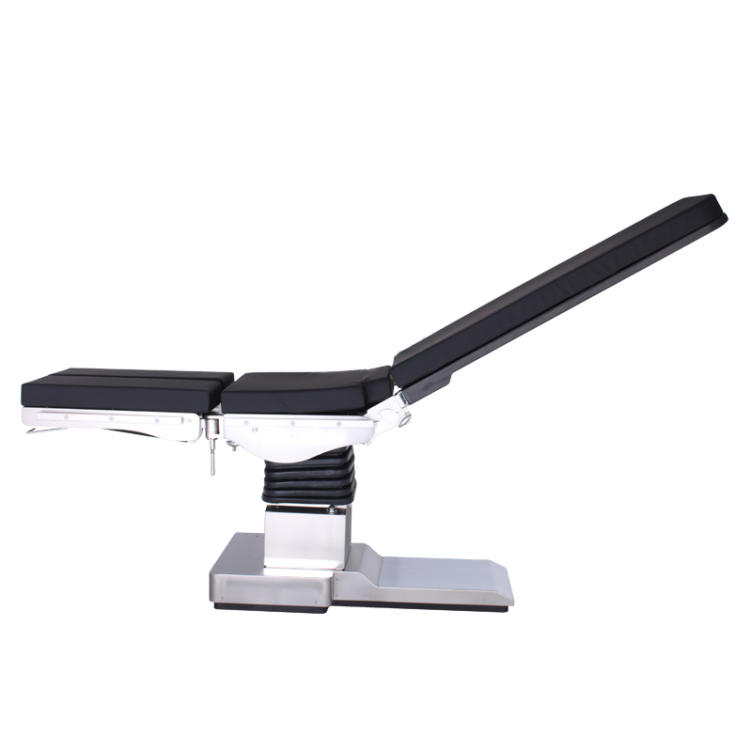 Т-образная конструкция основания Т-образная конструкция основания обеспечивает отличное пространство для ног и стабильный центр тяжести для хирургической бригады. Корпус операционного стола изготовлен из высококачественной нержавеющей стали #304.