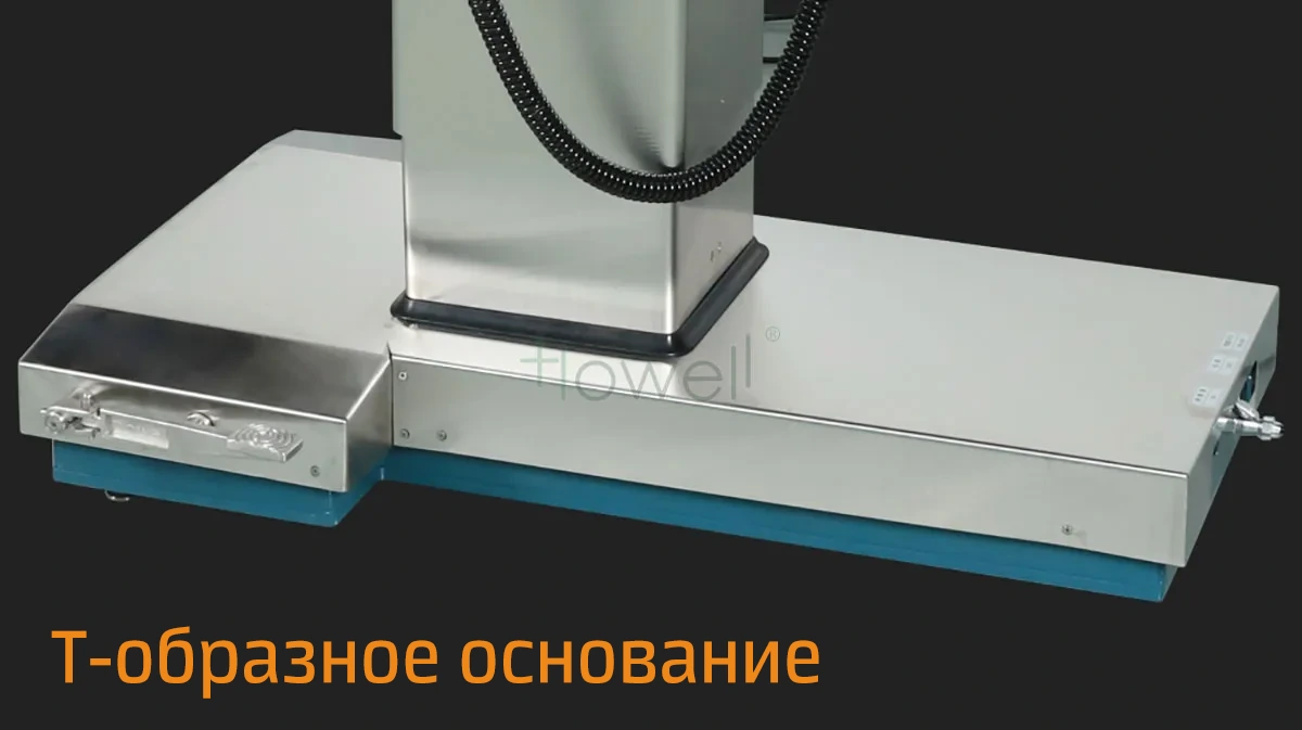 Т-образное основание Основание имеет Т-образную конструкцию, которая обеспечивает более комфортное пространство для ног медицинского персонала при стоянии.
